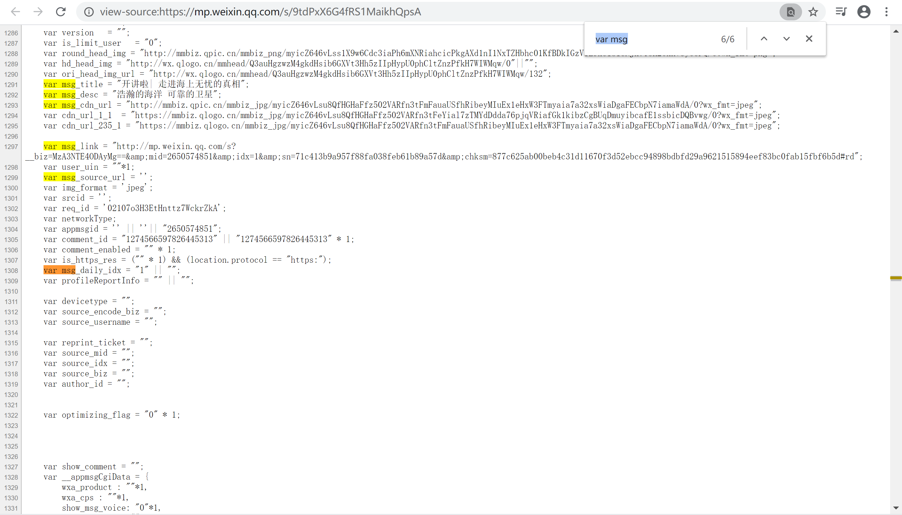 2.在页面中点击右键, 查看网页源代码。ctrl+f 搜索“var msg”。